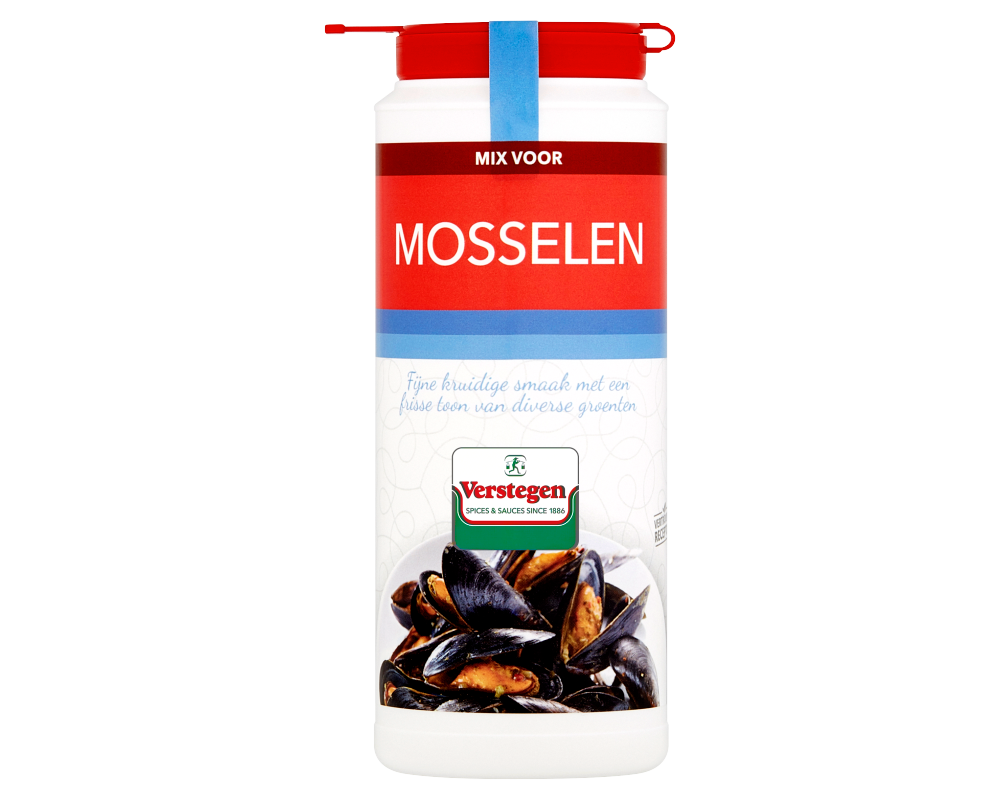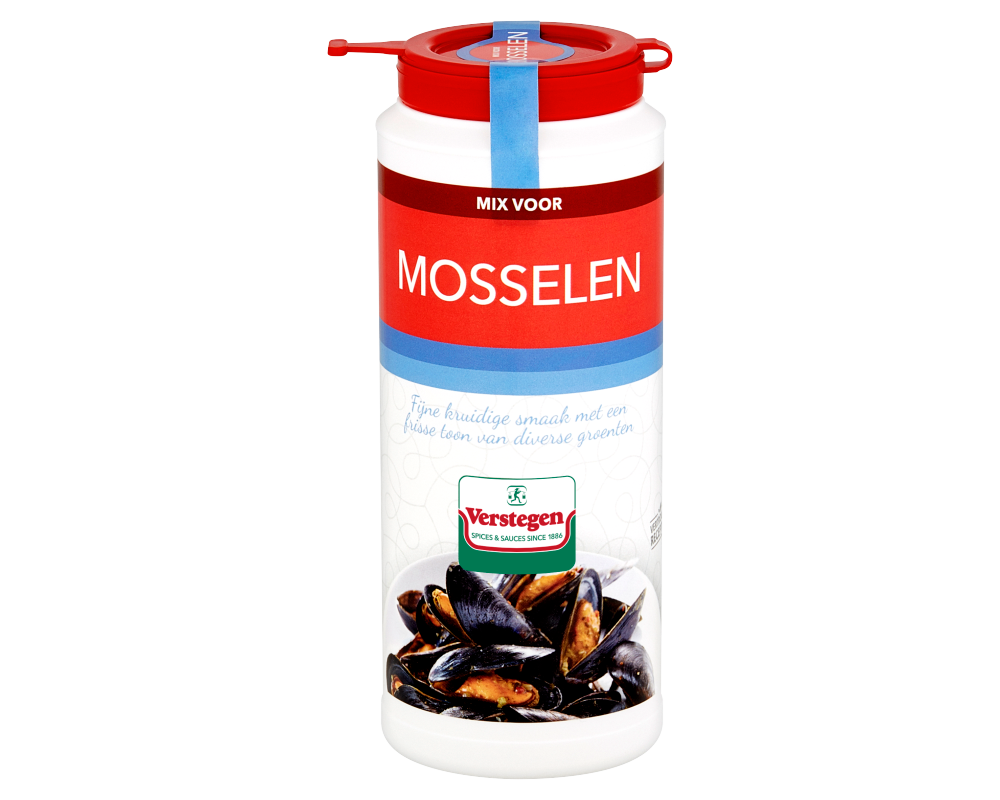 Benodigdheden (voor 4 personen): 4 kg mosselen, ca. 7 el (20 g) Verstegen mix. Bereidingswijze: maak de mosselen schoon. Breng de mosselen in een hoge pan met deksel aan de kook op hoog vuur en voeg de Verstegen mix toe. Schud de mosselen om en breng ze voor een tweede keer aan de kook. De mosselen zijn gaar als de schelpen open staan. Variatietip: voeg soep- of mosselgroenten toe, serveer met wit brood of patat/frites en mosselsaus.