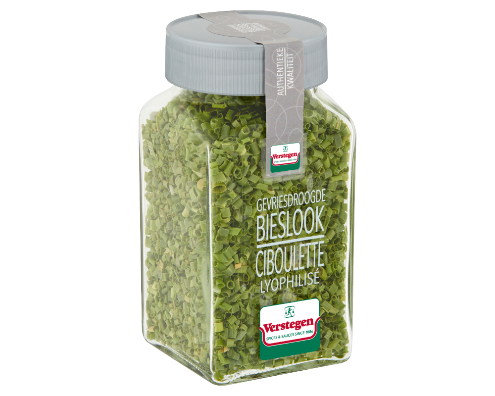 Bieslook is heerlijk om toe te voegen aan groente, vis, salades, (gepofte) aardappels en eiergerechten. Ook goed te gebruiken als garnering. De bieslook van Verstegen is gevriesdroogd, wat kwalitatief de beste manier is om kruiden te drogen. De smaak blijft zo het beste bewaard. Wanneer de kruiden in aanraking komen met vocht komt de smaak van verse kruiden weer naar boven.