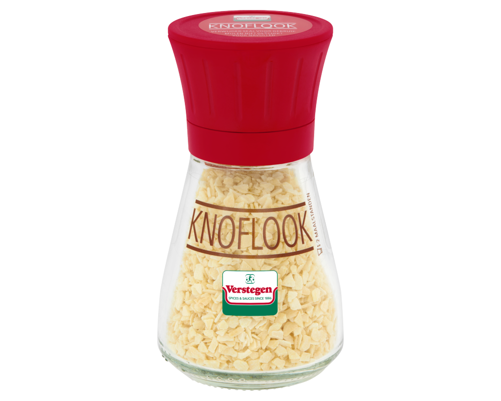 Knoflook is een een bekend specerij met een scherpe en krachtige geur. Het behoort, net als ui, prei en bieslook, tot de looksoorten. Met deze molen maal je de knoflook in de gewenste grofheid met de twee maalstanden. Voor een fijne maling laat je de dop in de lage stand staan. Maar door de dop eenvoudig iets omhoog te trekken, krijg je een grovere maalstand.
