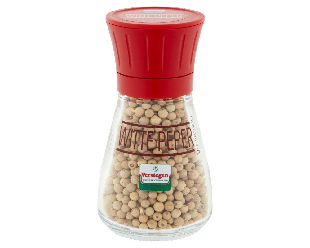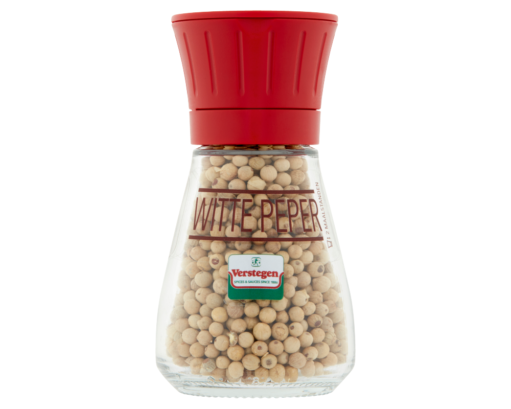 Peper is één van meest gebruikte specerijen ter wereld, zowel in zwarte als in witte vorm. Zwarte peper kan in vrijwel alle hartige gerechten gebruikt worden. Om witte peper te krijgen wordt de schil van de rijpe peperbes in stromend water weggewassen, zodat een blank peperbolletje tevoorschijn komt. Vervolgens worden (handmatig) de beste korrels geselecteerd waarna ze gemalen kunnen worden. Met deze molen maal je de witte peper in de gewenste grofheid met de twee maalstanden.