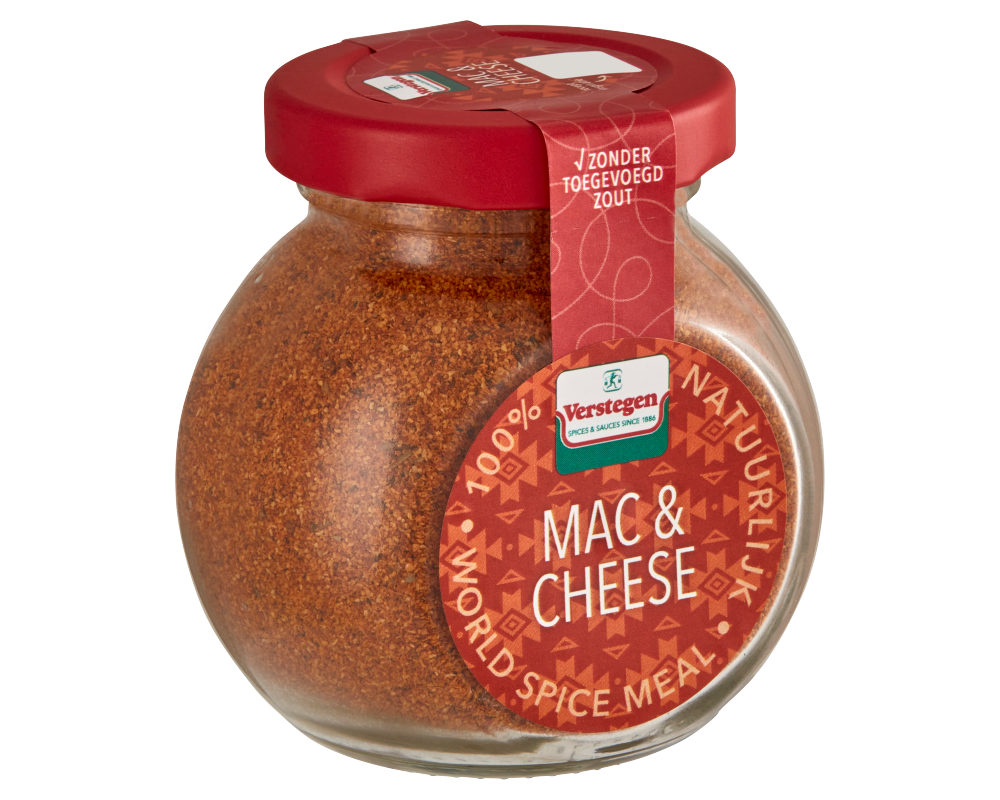 Zin in macaroni met kaas, het bekende pastagerecht uit Amerika en het Verenigd Koninkrijk? Maak ‘m dan extra lekker met deze speciale maaltijdmix: een kruidige smaakcombinatie, met zoete tinten van ui en knoflook. De World Spice Meal - Mac & Cheese zit verpakt in een handig voorraadpotje en bevat geen toegevoegd zout.
