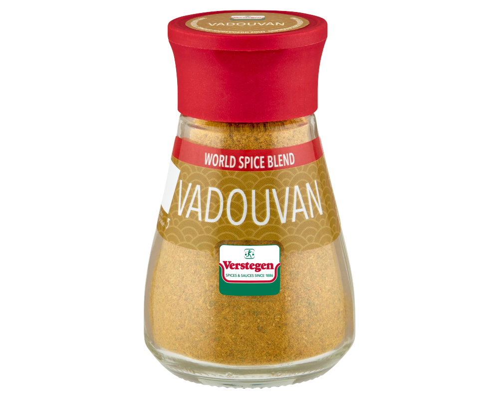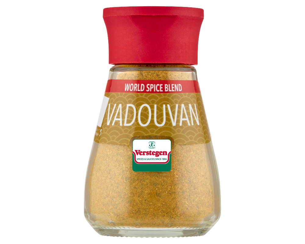 Vadouvan is de Franse versie van een specerijenmengsel uit India. De smaak is heel kenmerkend en aromatisch: pittig, licht zoet en rokerig. Heerlijk bij pompoensoep, curry of stoofschotels.
