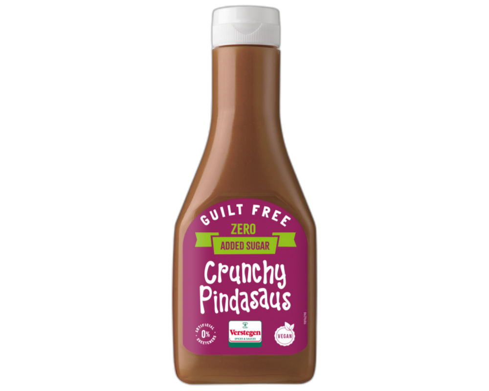 water, 23% gemalen pinda's, plantaardige vezel (wortel), tamari (water, sojabonen, zout, natuurazijn), groenten (ui, knoflook), natuurazijn, gemodificeerd maïszetmeel, gemodificeerd aardappelzetmeel, zout, kleurstof: ammoniakkaramel, voedingszuur: melkzuur, natuurlijke aroma's, zonnebloemolie, stabilisator: xanthaangom, conserveermiddelen: natriumbenzoaat en kaliumsorbaat, specerijen.