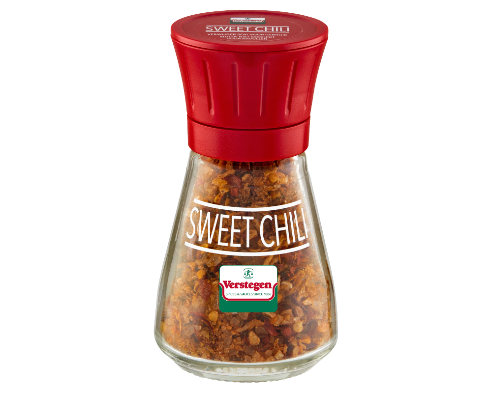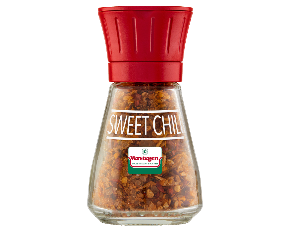 De Sweet Chili kruidenmix is heerlijk voor over de kip of vis. Maal de mix tijdens het bereiden over je eten. Met deze molen maal in de gewenste grofheid met de twee maalstanden. Voor een fijne maling laat je de dop in de lage stand staan. Door de dop iets omhoog te trekken, krijg je een grovere maalstand.