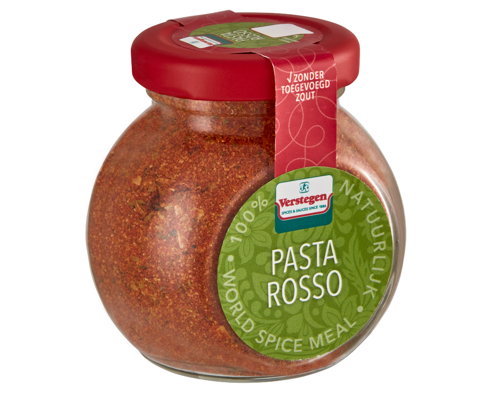 Proef Zuid-Italië met deze heerlijke maaltijdmix voor Pasta Rosso (‘rode pasta’). De knoflook, paprika en oregano combineren samen tot de kenmerkende smaak van dit gerecht. De World Spice Meal - Pasta Rosso zit verpakt in een handig voorraadpotje en bevat geen toegevoegd zout.