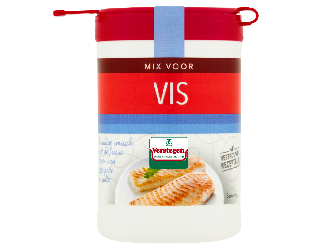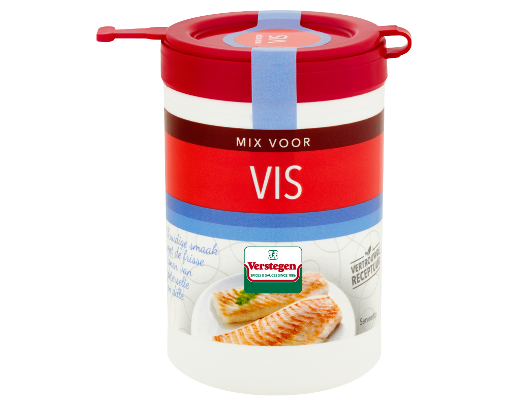 Bereidingswijze (voor 4 personen): bestrooi 500 g vis met ca. 1 el (10 g) Verstegen mix en laat het even intrekken. Verhit 2 el (olijf)olie in een koekenpan en bak de vis op matig vuur gaar. Vis kan ook gegaard worden in de oven op 180°C. Dunne visfilet heeft 5-10 min nodig om te garen, dikkere stukken 20-25 min.