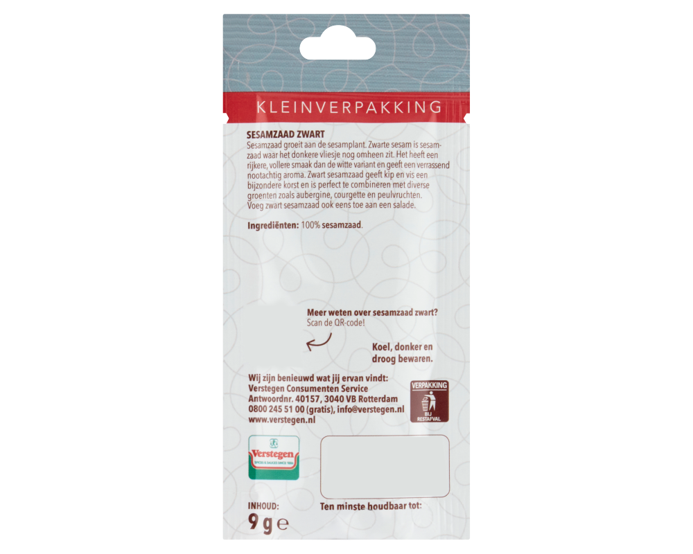 Sesamzaad groeit aan de sesamplant. Zwarte sesam is sesamzaad waar het donkere vliesje nog omheen zit. Het heeft een rijkere, vollere smaak dan de witte variant en geeft een verrassend nootachtig aroma. Zwart sesamzaad geeft kip en vis een bijzondere korst en is perfect te combineren met diverse groenten zoals aubergine, courgette en peulvruchten. Voeg zwart sesamzaad ook eens toe aan een salade.