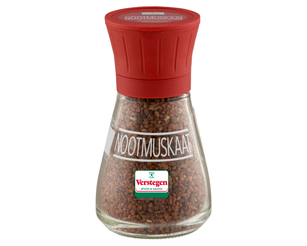 Nootmuskaat heeft een vrij overheersende geur en smaak. Hierdoor hoeft er maar een geringe hoeveelheid gebruikt te worden tijdens het koken. Verschillende toepassingsmogelijkheden zijn in soepen of in groenten zoals: bloemkool, witlof, sperziebonen en asperges. Met deze molen maal je de nootmuskaat in de gewenste grofheid met de twee maalstanden. Voor een fijne maling laat je de dop in de lage stand staan. Door de dop iets omhoog te trekken, krijg je een grovere maalstand.